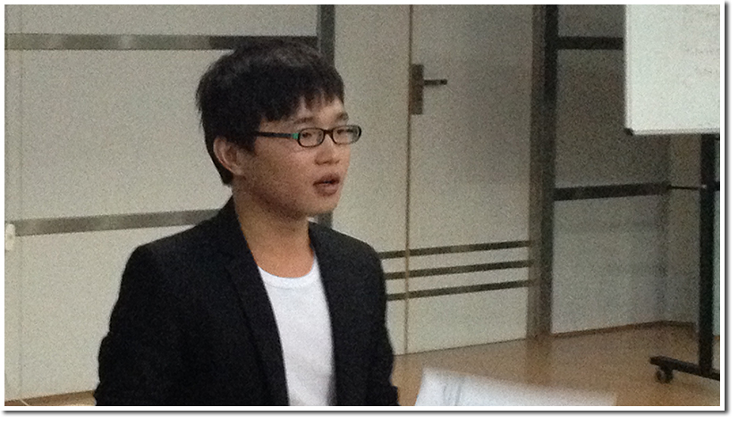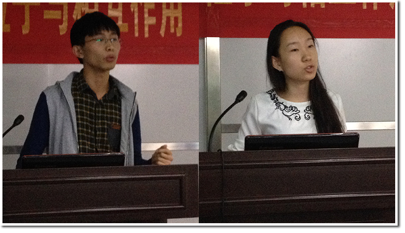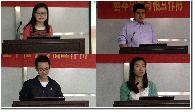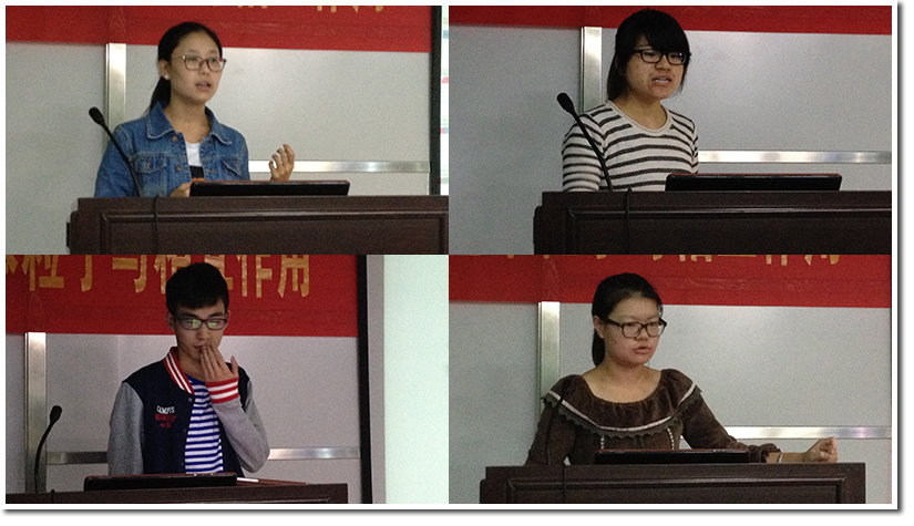 随后登台的是外联组组员胡泽敏,他以非常幽默的方式向大家介绍了外联组的近期工作,让会场气氛活跃了起来,通过一系列的图片展示,大家也感受到外联组同学在校外进行宣传工作的辛苦。接着上场的是赞助组副组长常婷婷,她简要介绍了赞助组最近的工作情况,赞助组今年在赞助工作上取得了很大的成就,与很多商家达成了协议,并且她还强调了赞助组要和其他职能组在工作上保持良好沟通,互相帮助与体谅。