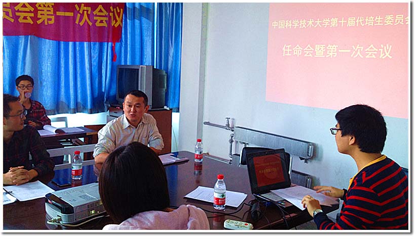 10月24日中午,中国科学技术大学第十届代培生委员会任命会暨第一次会议在东区校团委会议室顺利召开,校团委赵林老师出席了会议。会议由校研究生会常务副主席胡剑杨主持。