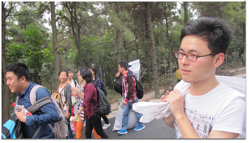 10月18日星期六下午两点半,同学们一同乘车,前往目的地。下午三时左右,在数院研会同学的组织及详细安排下,同学们安全到达紫蓬山。然后开始向山上出发,一路上,都能听到大家的欢声笑语,热闹非凡,虽然行李有点多,大家还是乐在其中。