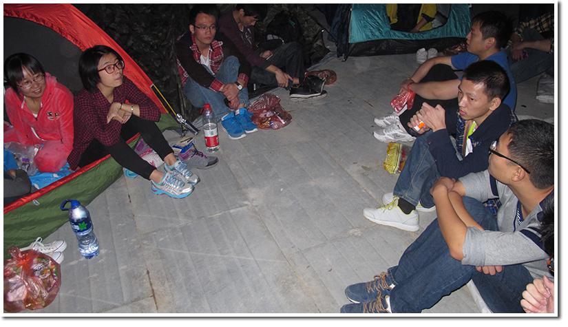 晚餐之后,同学们拿着各自携带的剩下的食品,边品尝美食边聊天玩游戏。有才情的同学从诗词谈到了人生,从书本走到了现实;善于交流的同学分享着彼此知道的开心的故事;活泼的同学玩起了谁是卧底,数数字的游戏。大家兴致勃勃,其中有一大部分的同学彻夜长谈,黎明将至但交谈的兴致仍没有丝毫降低。
