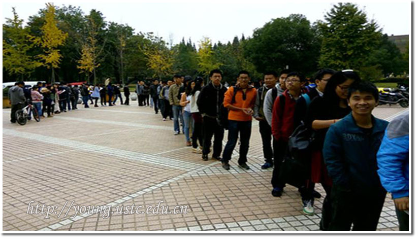上午11点左右,东、西区活动中心已经聚集了150多位排队领票的观众。11点30分,工作人员开始发放门票。同学们凭借本人一卡通每人可以领取门票一张。