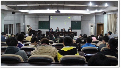 演讲结束后,四位同学与现场的学弟们、学妹们进行了面对面的交流,逐一解答他们心中的疑惑。活动到了最后,很多学弟学妹们都迟迟不肯离去,还有很多问题要和学长们探讨。由于时间关系,学长留下了他们的QQ号和手机号码,让学弟学妹们可以随时与他们交流。