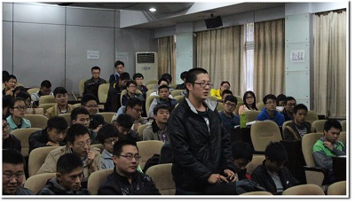 演讲结束后,四位同学与现场的学弟们、学妹们进行了面对面的交流,逐一解答他们心中的疑惑。活动到了最后,很多学弟学妹们都迟迟不肯离去,还有很多问题要和学长们探讨。由于时间关系,学长留下了他们的QQ号和手机号码,让学弟学妹们可以随时与他们交流。