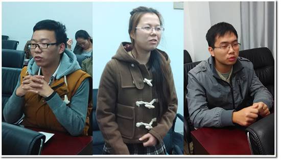 副主席周建斌认为首先组织者要认真负责,在组织活动前要做好调查和前期准备,组织人员和工作人员要有过硬的心理素质和应变能力,以处理工作中的突发情况。副主席刘美提议举办的活动程序要简单,方便同学们参与,活动要与同学们的切身利益相关,为同学们谋福利。罗桂师兄则提议要增加同学的社交活动,要增加不同年级、不同学科甚至不同实验室中小范围内的经验交流,能带来很多有意义的启发和创新点。