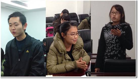 研会副主席张天文等人提醒大家要认清团总支和研究生会的服务对象是全体研究生,特别要多听多了解新生们的想法,了解他们的需求,不能闭门造车,要多学习别人的经验,学会换位思考,使同学在有限的时间里做最有意义的事情。