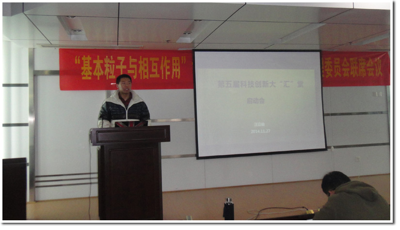 (“科技创新大‘汇’堂”项目组讯)11月27日中午12:30--14:00,由研究生院、校团委主办、校研会承办的第五届“科技创新大汇堂”启动会在东区近代物理系210会议室顺利召开。跟进副主席张忠峰及项目全体成员参加了本次会议,会议由项目负责人汪宣伯主持。