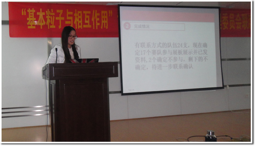 随后,各职能组组长介绍现阶段工作完成情况及下一阶段工作安排。策划组组长邢昕总结了前一阶段策划组的工作,提到院系沙龙通知和初步的策划都已确定,下一步的工作主要是策划开幕式流程、活动现场;展区布置及其他更加细致的工作安排。宣传组副组长崔杰、外联组组长郑雪轩、学术科普展板组王雨薇和挑战杯展板组毛珂等也分别介绍了自己组的工作情况。