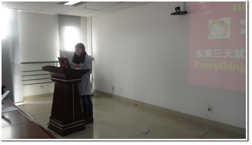 会议第三项,跟进副主席张忠峰对会议进行了全面总结。他肯定了此次项目形式丰富,内容创新。鼓励大家在接近期末的时间里,能够合理的安排自己的时间,把此次项目办好办优,给科大的师生留下较好的印象。同时他也对项目中存在问题给出了诚恳的建议,他指出:加大宣传力度,增加活动当天的工作人员,要求工作人员要有责任心的完成工作。