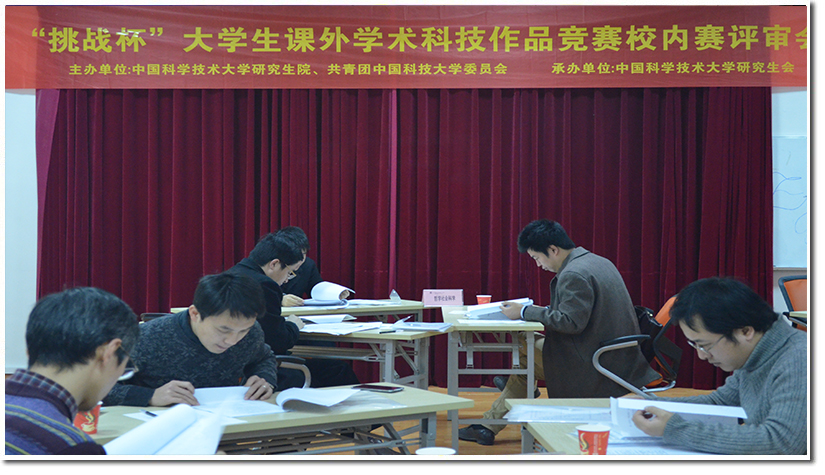 2015年1月9日上午9:00-11:30,第五届“科技创新大‘汇’堂”闭幕式暨第十四届“挑战杯”全国大学生课外学术科技作品竞赛校内选拔赛评审会及颁奖典礼在物理学院会议室成功举行。中国科学技术大学党委副书记蒋一、研究生院副院长古继宝、研究生院教学与学籍办公室主任万洪英、校团委副书记张平、校团委副书记赵林、挑战杯校内赛评委老师、参赛选手以及各院级分团委团总支老师加了本次闭幕式。