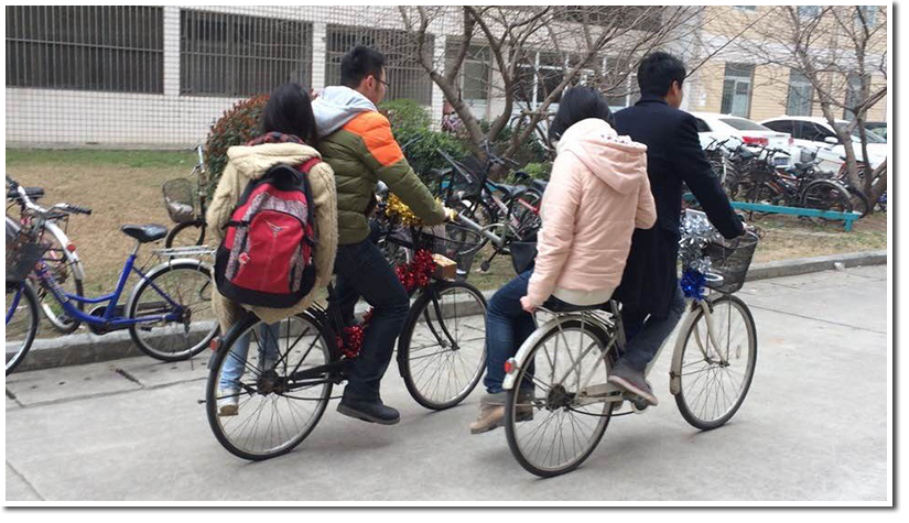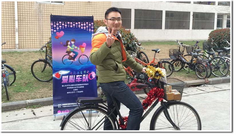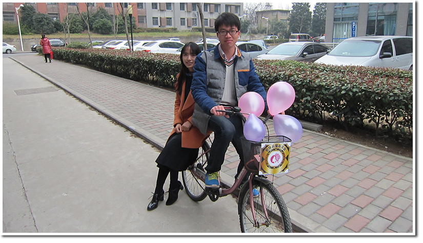 本次活动由六位志愿者组成一支车队,分散在东区和西区,为有需要的女生们提供服务,志愿者耐心热情,在女生楼宿舍门口邀请女同学上车,车手骑着彩车载着科大女生在校园里骑行,画面温馨而美好。
