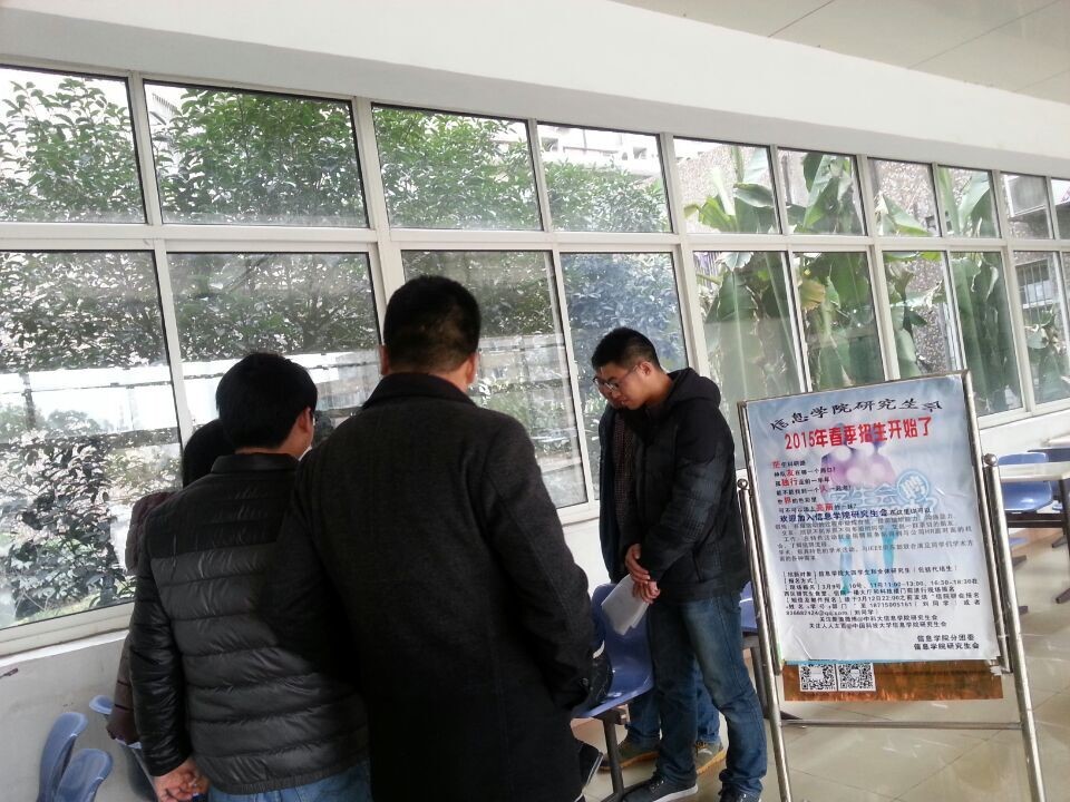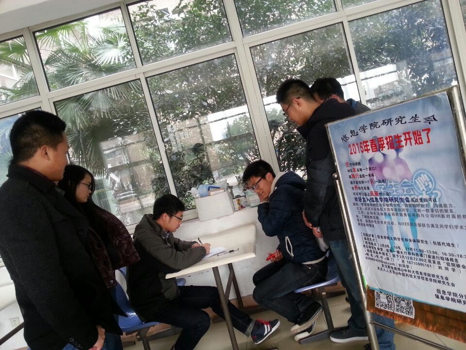 春风拂面的三月,不仅带来的春天的气息,也给信息学院研会注入了新的力量。研会招新活动在3月9日到11日隆重举行,分别在研究生食堂门口、信息学院门口、科技楼设立了招新点。在老成员的耐心介绍下,很多同学都踊跃报名,气氛相当活跃。