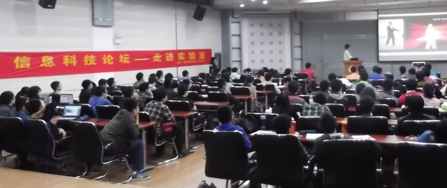 2015年4月19日,“信息科技论坛——走进实验室”活动在西区学生活动中心二楼学术报告厅成功举行。本次活动由信息学院分团委、研究生会主办,院学生会协办,旨在通过活动的平台,让本科的同学对6系、10系、23系的实验室有更多的认识和了解,特别是为信院大二、大三的师弟师妹们选择进入实验室、保送研究生等提供便利。同时,也为来自信院各系的实验室做好服务工作。
