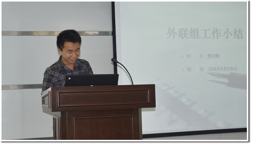 外联组组长贾袁骏对前期外联工作和个人感悟做了分享。