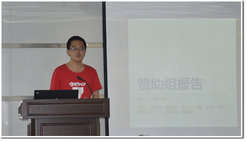 赞助采购组组长赵申森介绍了前期冠名赞助情况并对下一阶段的工作职能转变做出安排。