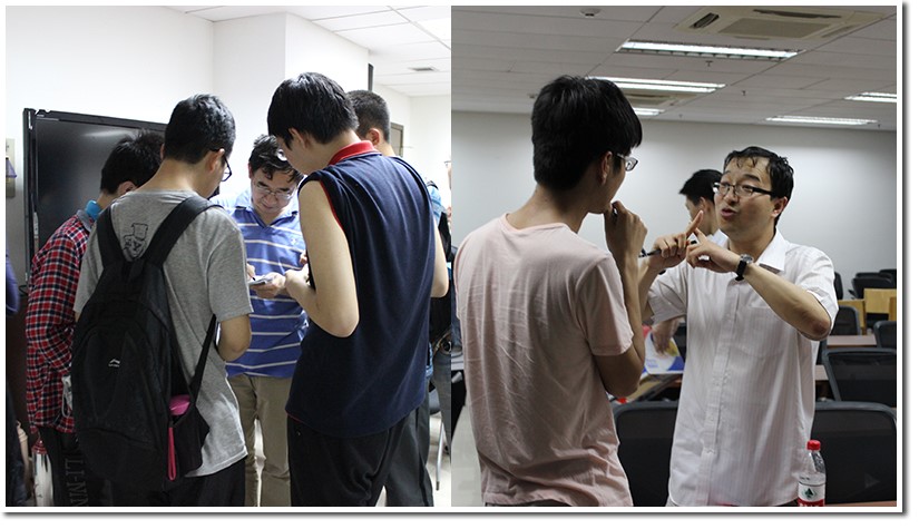 下午六点,来自物研与数研会的活动工作人员就来到报告现场,分发零食、调试设备,完成了场地布置。随后在六点一刻,就开始出现参加报告的同学,六点四十五,同学陆续就坐,会议室已经爆满。然而人数还在增加,会议室几近饱和,为了同学更好的观听感受,工作人员赶紧前往数院自习室借来椅子。