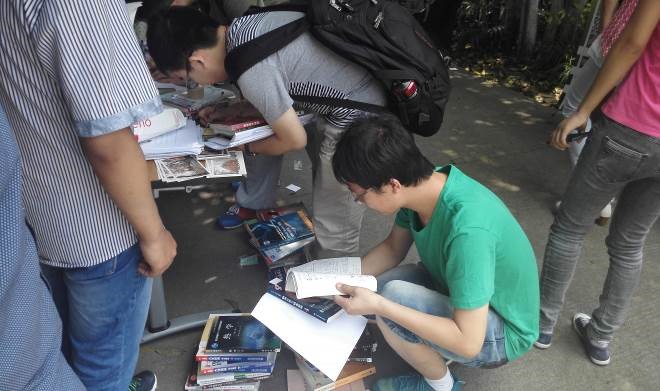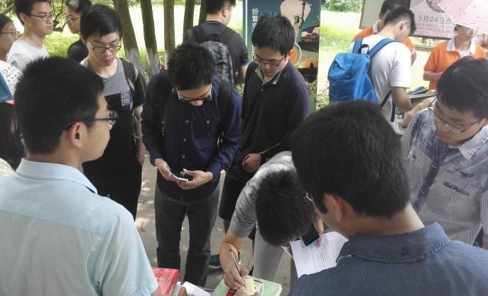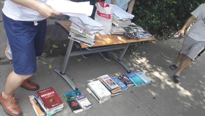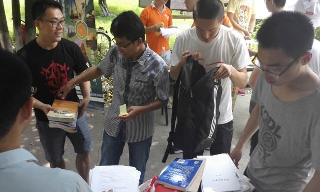 活动现场很快聚集了熙熙攘攘的同学,大家热情高涨,学弟学妹拿到自己所需要的书籍那种欣喜的心情无以言表。