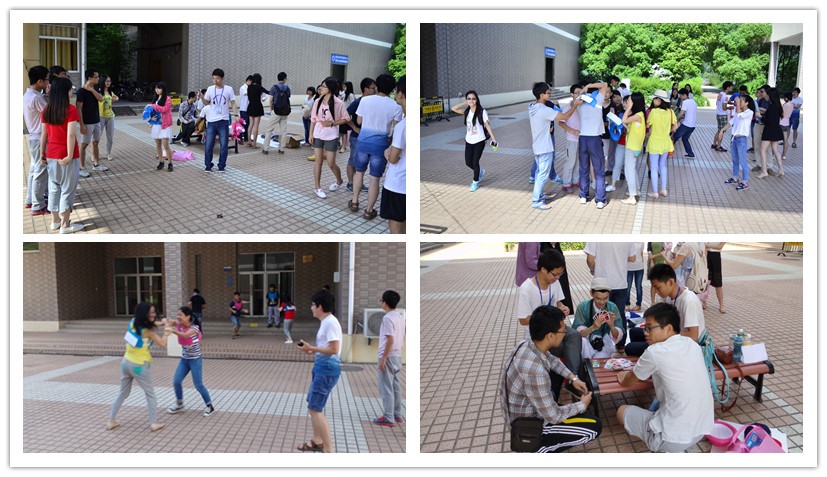 在化妆拍照的同时,报名参加玩游戏的同学早已迫不及待了。在工作人员的组织下,一拨同学玩起了跑男里面很火的撕名牌游戏。参与游戏的人分为两队,双方斗智斗勇,制定战略,从西活一楼到西活二楼再到操场上,玩得热火朝天,不亦乐乎,吸引了来往的同学驻足观看。其他的同学则玩起了桌游和扑克牌,欢声笑语不时地传来。