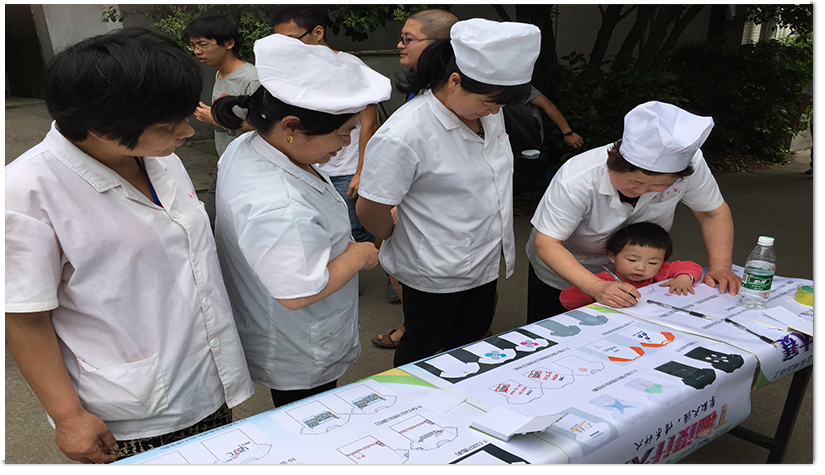 在西区本科生食堂门口的投票站台也被路过的同学们团团围住,就连食堂的工作人员和小朋友也被火爆的投票场面吸引过来驻足围观,拿起笔为欣赏的作品点赞。