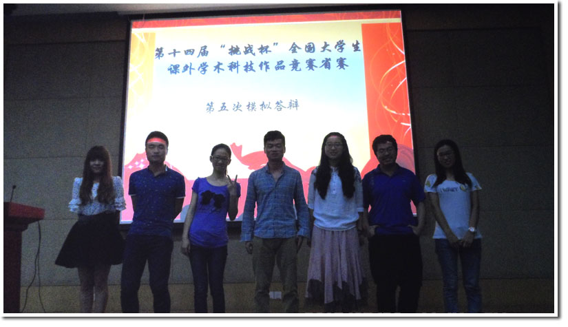 5月29日上午九点,第十四届“挑战杯”全国大学生课外学术科技作品竞赛省赛第五次模拟答辩在东区环境资源楼报告厅举行,出席的评委嘉宾有董雨老师、傅尧老师、曾杰老师、马运生老师、万洪英老师、校团委张平老师、校团委赵林老师和校团委王童老师,参加本次模拟答辩的还有六支参赛队伍及项目组成员。