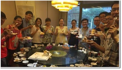 活动第二部:专项主题团日活动。紧接着本班开展了 “我给我们过生日”专题团日活动。首先,由负责人宣布集体生日开始,并代表班干为团员们送上生日的祝福。本次具体以集体聚餐展开,主要为6月份的同学提前过生日。聚会期间,大家介绍了自己出生的月份,交流了自己生活和学习方面的经历,共同分享了生日蛋糕。最后,大家在轻松愉悦的气氛中结束了此次活动。