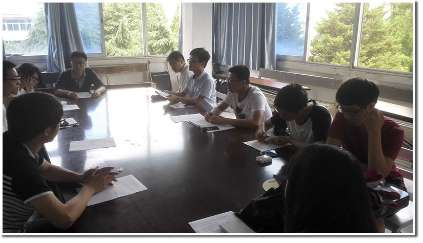 之后,各组长和组员对项目进行了各自发言。陈舜平作为组长提到了评分表设计、材料整理的细节问题,为以后优秀院系评比提供了借鉴。各组员踊跃发言,提出网络化平台、院系活动反馈表等很多创造性的建议,为以后活动的开展提供了一个新的方向。
