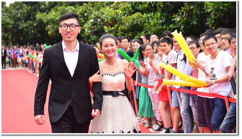情侣组合在红毯上情侣搭档占多数,段吟池、任明伟这一对默契的情侣就是其中之一,他们相识于校研究生会,相恋于校研究生会,此次红毯走秀,更是代表着校研究生会同学的精神面貌。
