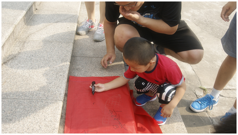 大家在大蜀山汇合之后,展开我们的宣传条幅“低碳环保,绿色出行,我为合肥空气做点事”,开始宣传活动。周日的上午,来大蜀山爬山的游客很多,这也便于本活动的宣传工作。大家纷纷向过往游客,宣传和讲解我们的环保理念和绿色出行的建议。游客们在我们的鼓励下,在宣传条幅上签字,表明自己对于低碳环保和绿色出行的支持。游客们签字之后,我们会送给他们一张代表本活动主题的明信片,留做纪念。忙碌而开心的一上午过去了,宣传条幅上满是游客们的签名,大家对我们活动的主题——低碳环保,绿色出行——很是支持和理解。最后,同学们一起合影留念。