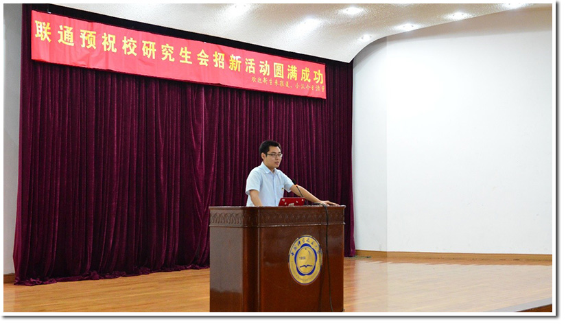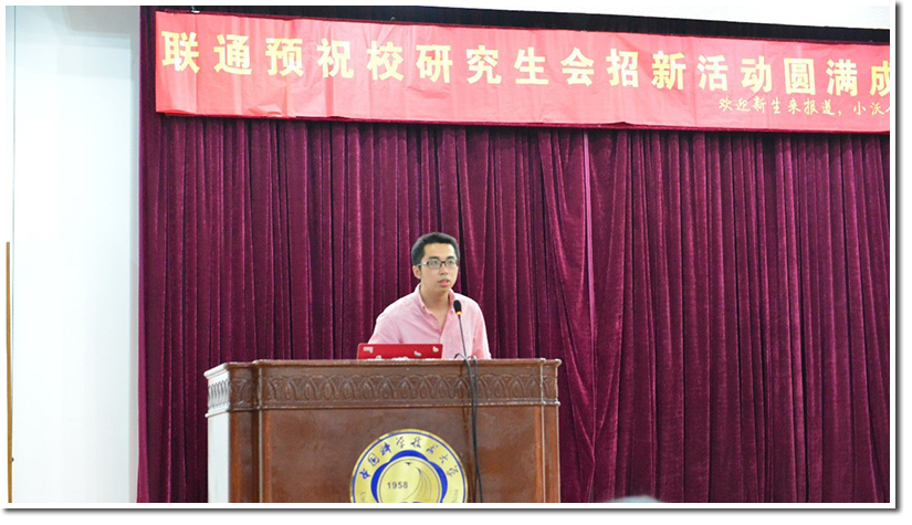 首先由校研究生会主席张海洋为大家致辞。他对到场参与校研会招新的同学们表示欢迎,并从校研究生会的发展重心、人文情怀等诸多方面深入浅出的为大家介绍了研会的整体情况,引起了大家对研会的兴趣和思考。
