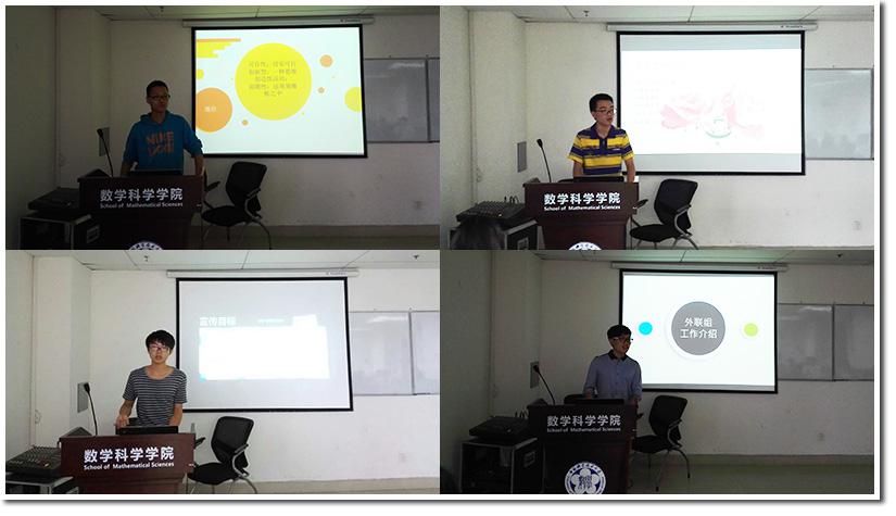宣传组组长钟鑫鹏从宣传的定义展开,介绍了本项目的宣传目标及重要时间节点,强调与其他项目组、研会各部门进行及时有效的沟通,就宣传组线上线下的工作进行了简单的介绍,并提出了宣传的几个注意事项。接着上场的是外联组组长于彦鹏,他首先幽默的称外联组是一块砖、哪里需要往哪里搬,让会场气氛活跃起来,他认为外联组的工作意义就是扫清障碍、铺平道路,并汇报了已经完成的工作和未来要完成的工作情况,希望大家能够共同努力,在美丽邂逅这样一个大舞台上尽情的施展身手。