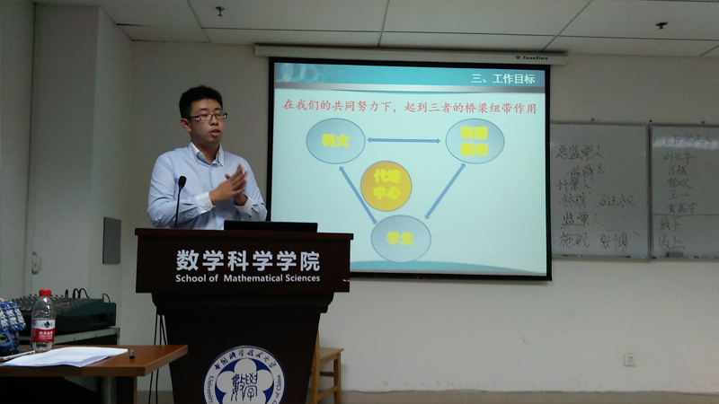 首先由会议主持人徐明月介绍会议议程。随后,校研究生会常委张博对代培生工作中心的情况进行介绍。介绍了代培生工作中心的组织机构设置、活动组织形式,对往届代培生委员会组织的活动进行了回顾,并再次对大家来参加代培生工作中心表示欢迎。