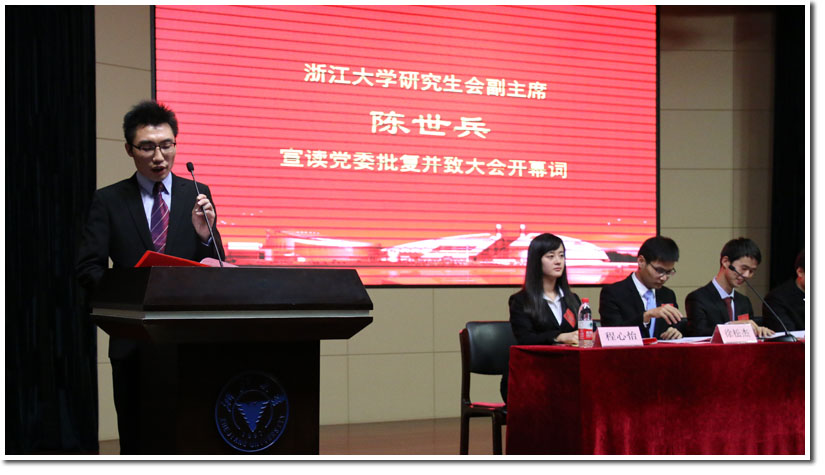 大会开幕式在庄严的国歌声中拉开了帷幕。首先,浙江大学研究生会常务副主席陈世兵宣读了浙江大学党委下发的关于研究生工作的文件,并致开幕词。
