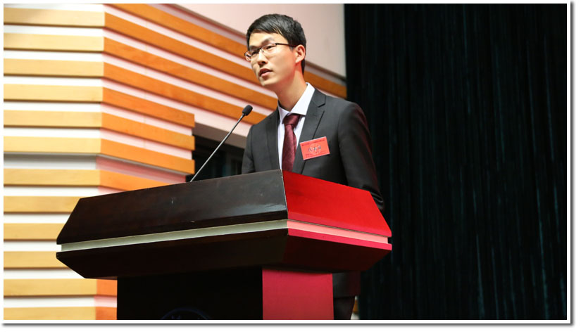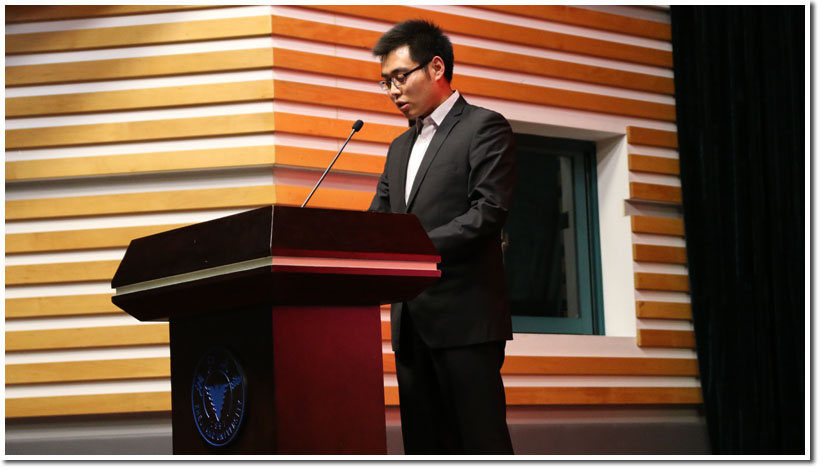 最后,浙江大学研究生会主席张鲲鹏上台做工作报告,总结主席团一年的工作成果。