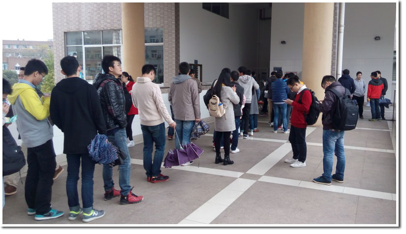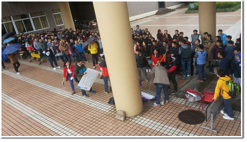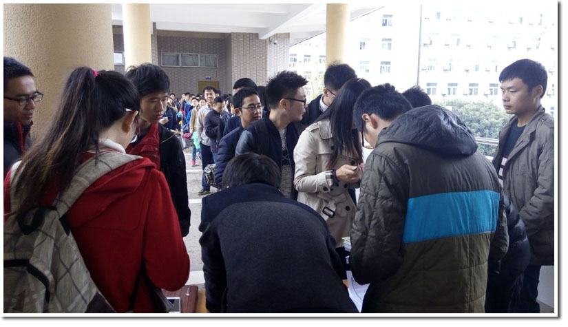 还未到活动时间,就有很多同学自发排队领票,在准备发票的同时,工作人员作了有关领票规则和注意事项的说明。