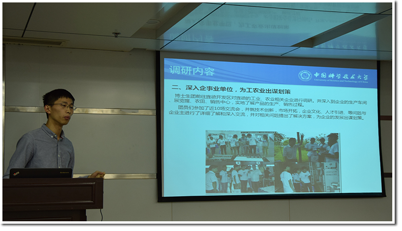 之后,召开“社会实践与创新创业”论坛。首先中国科大研究生会副主席黄浩智就社会实践工作做汇报,具体介绍了中国科大博士生实践服务团所取得的丰硕成果。然后,中国科大研究生会实践交流部长崔杰从求职航标系列活动、科技创新大“汇”堂系列活动、创新创业类活动三方面汇报了研究生职业发展与创新创业工作。最后,西安交大校研究生会主席李龙就“科研相助,生活相守”主题做了精彩演讲。