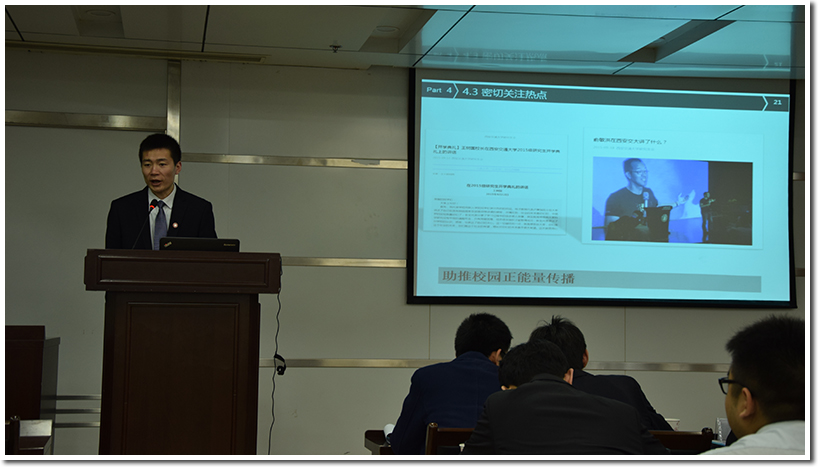 随后,西安交大研究生会主席李龙上台致辞并表示两校研究生会友谊深厚,交流历史悠久。他希望两会继续加强合作交流,共同成长,从而实现覆盖面的扩大和影响力的提升。