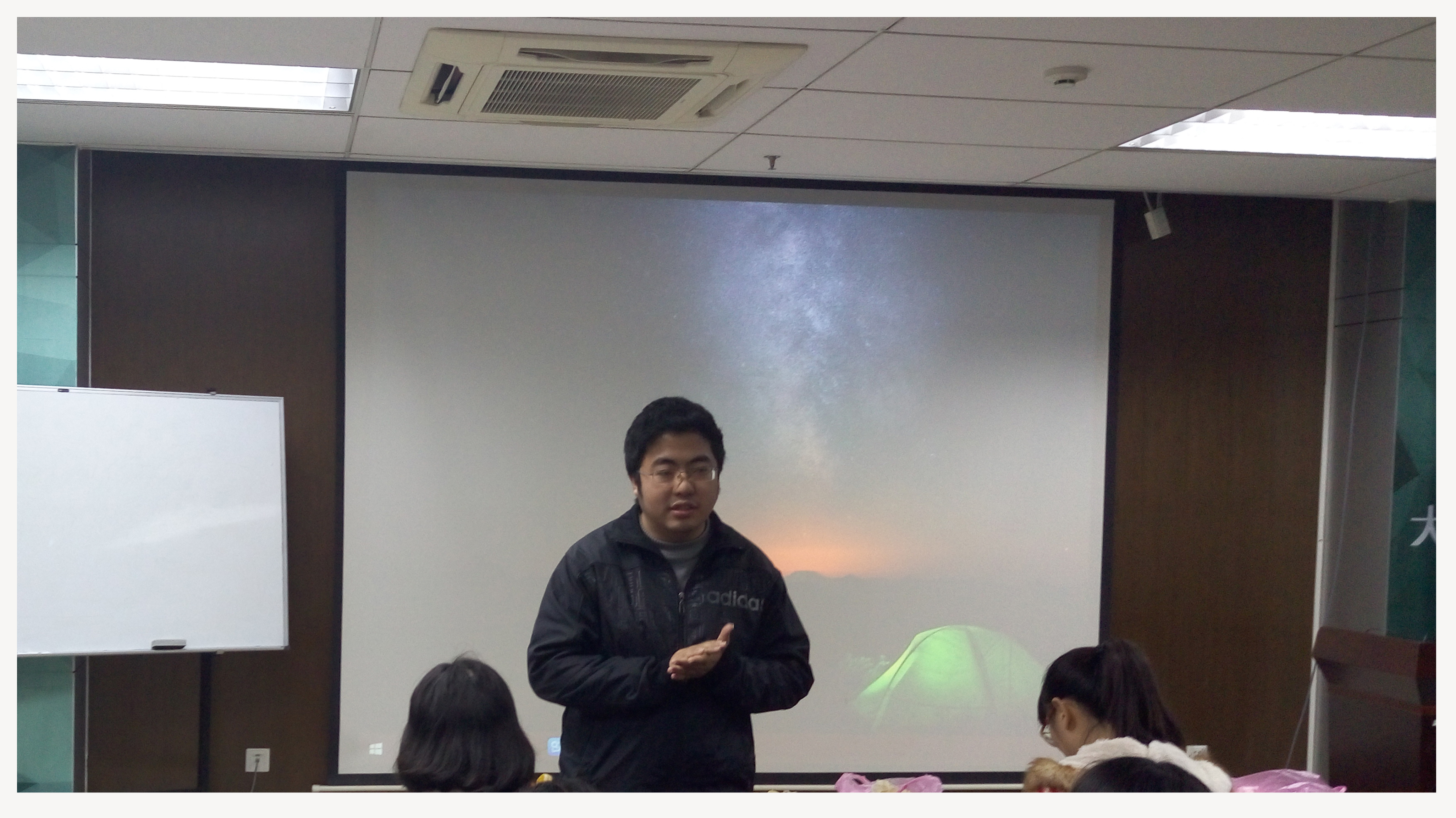 接下来,各职能小组组长对近期已经开展的工作及下一步的工作安排做了汇报。策划组组长陈宏选对联谊活动的整个策划做了介绍,近期要开展的工作主要就是游戏的开展及冬至美食节活动的策划。宣传组组长胡孜鸣对宣传作了简要的工作安排,对组员进行分工,以更好地完成线上及线下的宣传。外联组组长孙瀚对外联组前期工作进行了安排。
