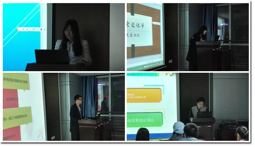 会议第二项内容是各职能小组组长发言。策划组、宣传组、赞助组以及外联组的组长分别对自己项目小组负责的具体工作作出了详细介绍,强调了本届“美食文化节”项目工作的侧重点,并对接下来的工作进行了展望和部署。