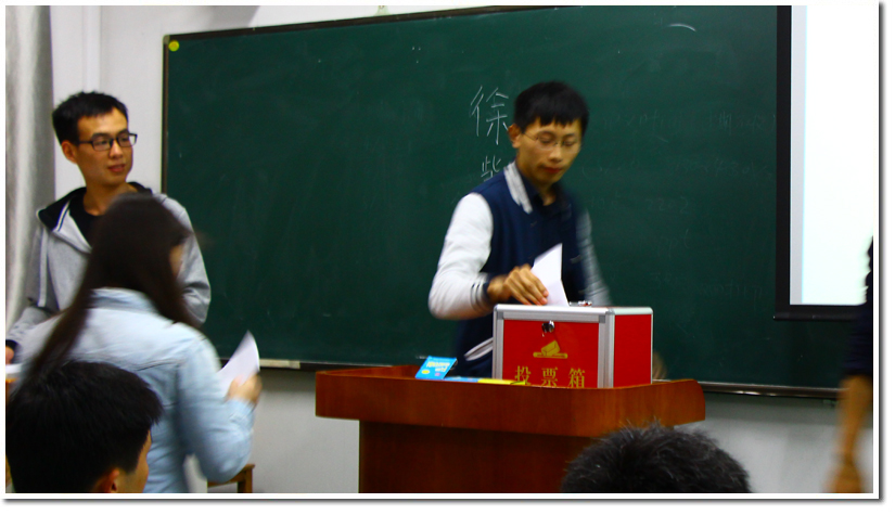 在分发了《选举办法(草案)》之后,各班级代表认真阅读并一致通过了草案,随后由主持人提议了监票人、计票人名单。各班级研究生代表在监票人员和计票人员的组织下进行了无记名投票,选出了十位出席校研代会的研究生代表,最后通过讨论,推荐了研究生委员会委员候选人名单。