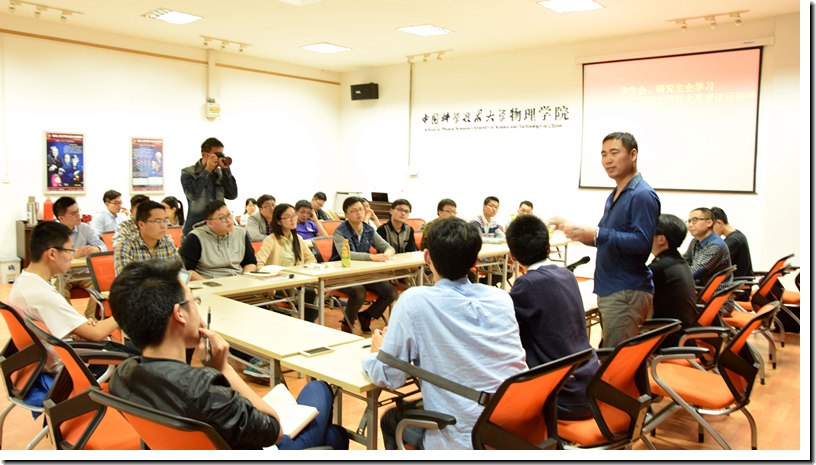 会议起始,由李军配师兄进行心得分享,他作为学生代表与总书记对话,并深受启发,他说总书记如长者一般关心大家的学习与社会生活,鼓励和支持青年创业者。更深感作为一个科大人,应该打铁还需自身硬,踏踏实实做好自己。
