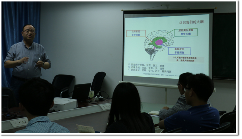 2016年5月23日晚7点,中国科学技术大学研究生会第五期中高层干部学习研讨在管科楼1508会议室顺利举行。会议邀请到我校管理学院副院长杨锋教授进行了题为《人类决策行为浅谈》的培训讲座,校研究生会主席、各副主席、常委部长及部分院系研究生会主席参加了本次会议。会议由杨锋教授主讲、周世新主持。