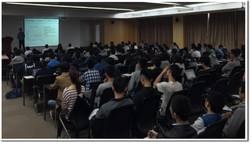 计算机学院研究生学术论坛是计算机学院最具有科技含量的活动。论坛不但邀请计算机学院优秀的师兄师姐报告自己的科研成果,而且还会邀请海内外知名的科技大牛为大家作报告,每一次都会吸引众多的同学前来参加。