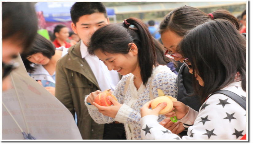 此外,“削苹果”活动也成为此次女生节活动最耀眼的活动之一。大家争相比赛,“互较高下”,热趣之余的竞技也增添了此次活动的吸引力。