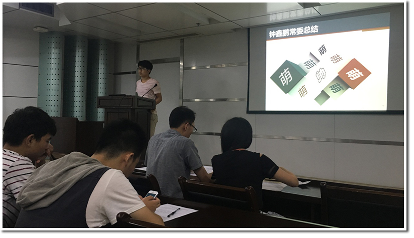 接下来,策划组组长程铭详细介绍了现场流程及会务工作。其中,程铭重点针对招干大会、项目模拟、素质拓展、线下讨论及面试环节进行了全方位介绍,同时,希望全体成员注意在一言一行中树立良好的研会形象。