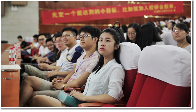 接下来,副主席苏琪骅用了一连串数字为大家生动介绍了研究生会的基本情况、部门分工等,并阐述了“正规、协作、创新、温情”的研会价值观,简要介绍了研会的品牌活动,如美丽邂逅、新年联欢晚会、See You毕业晚会、女生节、美食文化节等。