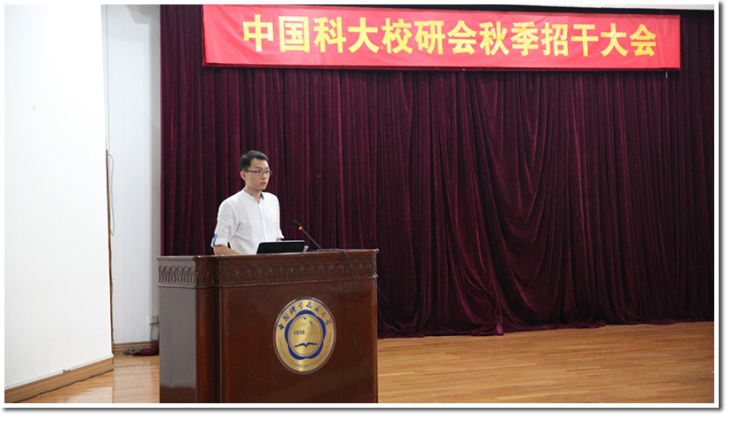 首先,校研究生会主席解虎跃为大家致辞。他对到场参与校研会招新的同学们表示热烈欢迎,并从校研究生会的发展重心、人文情怀等诸多方面深入浅出的为大家介绍了研会的整体情况,引起了大家对研会的兴趣和思考。