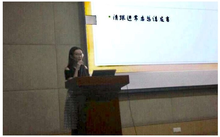 接着上场的是外联组组长朱胤臻,她认为外联组的工作意义就是扫清障碍、铺平道路,并汇报了已经完成的工作和未来要完成的工作情况,希望大家能够共同努力,注意项目开展期间的良好沟通和及时反馈,希望大家都能在美丽邂逅这样一个大舞台上尽情的施展身手。