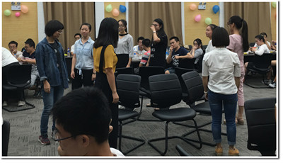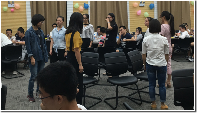 此次晚会的主要目的是联谊,所以大部分内容都是考验团队合作的小游戏。这次联谊一共包括了五个小游戏分别是:暖身游戏、抢凳子、瞎子背瘸子、你画我猜、听歌识曲,同学们乐在其中。这次的活动更是采取了积分形式,晚会结束将会为大家颁发礼品。