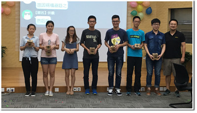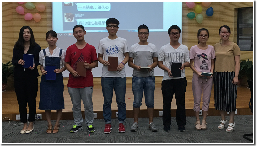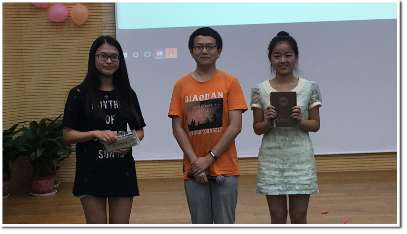 随后,团总支书记裴香涛老师、班主任刘毅老师以及班级团支书梁林波同学为大家颁发了前几轮游戏中累计积分最高的前三名的奖品。