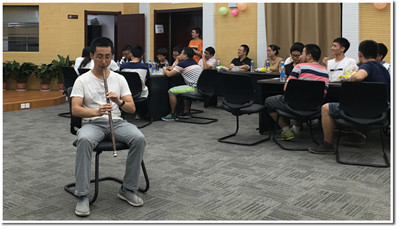在小游戏中还穿插着同学们的才艺展示,例如姜世民同学为大家表演的箫独奏。