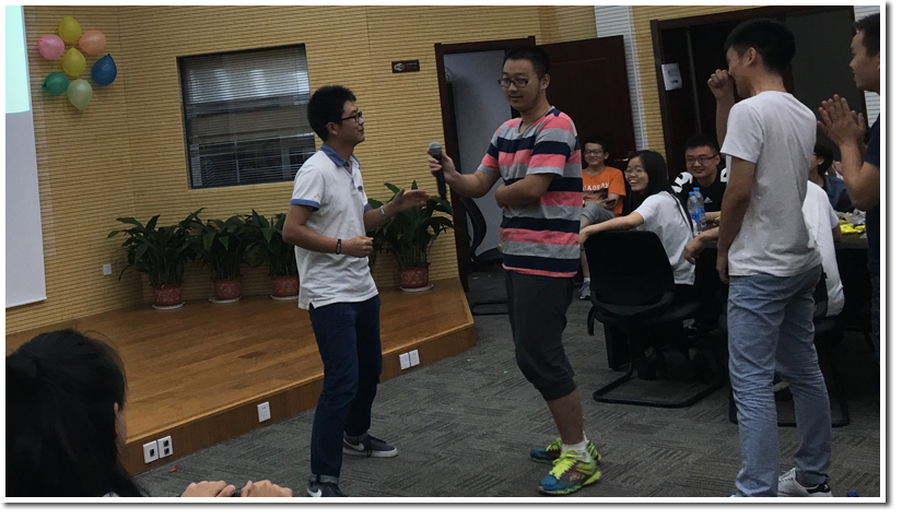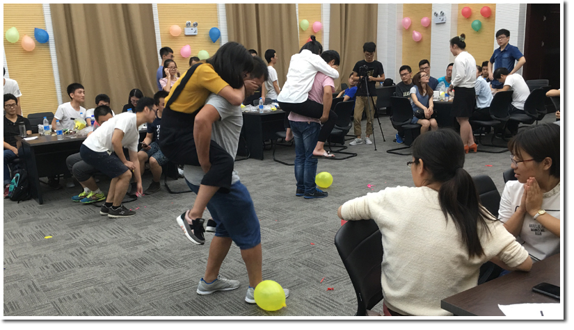 此次晚会的主要目的是联谊,所以大部分内容都是考验团队合作的小游戏。这次联谊一共包括了五个小游戏分别是:暖身游戏、抢凳子、瞎子背瘸子、你画我猜、听歌识曲,同学们乐在其中。这次的活动更是采取了积分形式,晚会结束将会为大家颁发礼品。